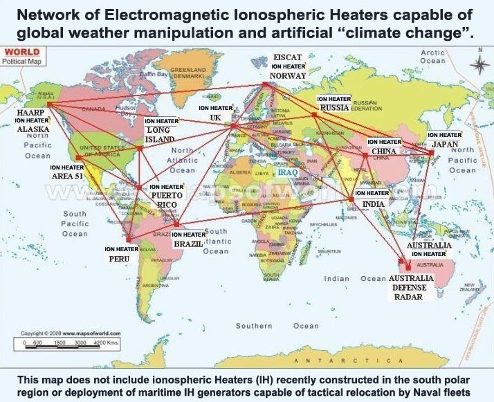 There is another layer of physical matrix with ionosphere heaters. They are actually influencing ionosphere around the earth and creating failures in weather. This one (Alaska) is famous.