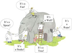 This Elephant represents overall situation. People have own interpretation about the particular situation. As you can see, none of them are correct.