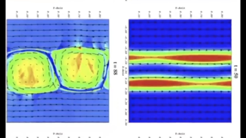 The influence of this spiral-shaped magnetic field on the interplanetary medium (solar wind) creates the largest structure in the Solar System, the heliospheric current sheet. Parker’s spiral magnetic field was divided in two by a current sheet,[8] a mathematical model first developed in the early 1970s by Schatten. It warps into a wavy spiral shape that has been likened to a ballerina skirt.[9][10] The waviness of the current sheet is due to the magnetic field dipole axis’ tilt angle to the solar rotation axis and variations from an ideal dipole field.[11]